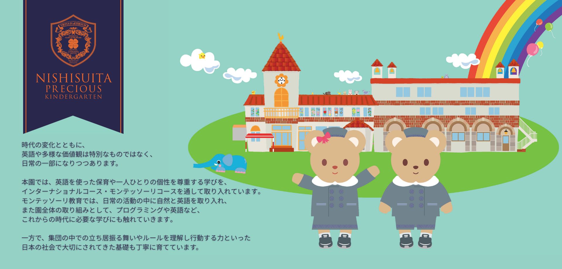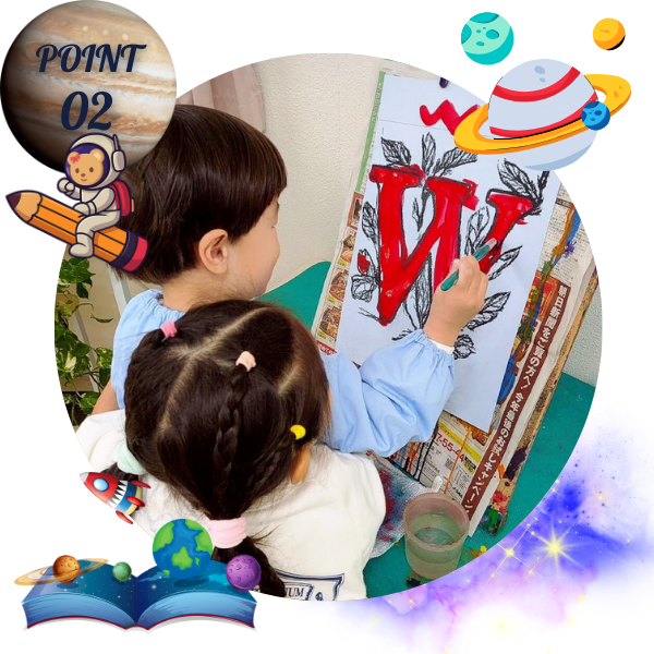 西吹田プレシャス幼稚園では、次世代を担う子どもたちが国際的な視野を持ち、世界で活躍できる人材へと成長できるよう、コスモポリタン(国際人)・グローバル人材の育成に力を入れています。英語活動や多様な文化に触れる機会を取り入れ、豊かな感性とコミュニケーション力を育む教育環境を整えています。