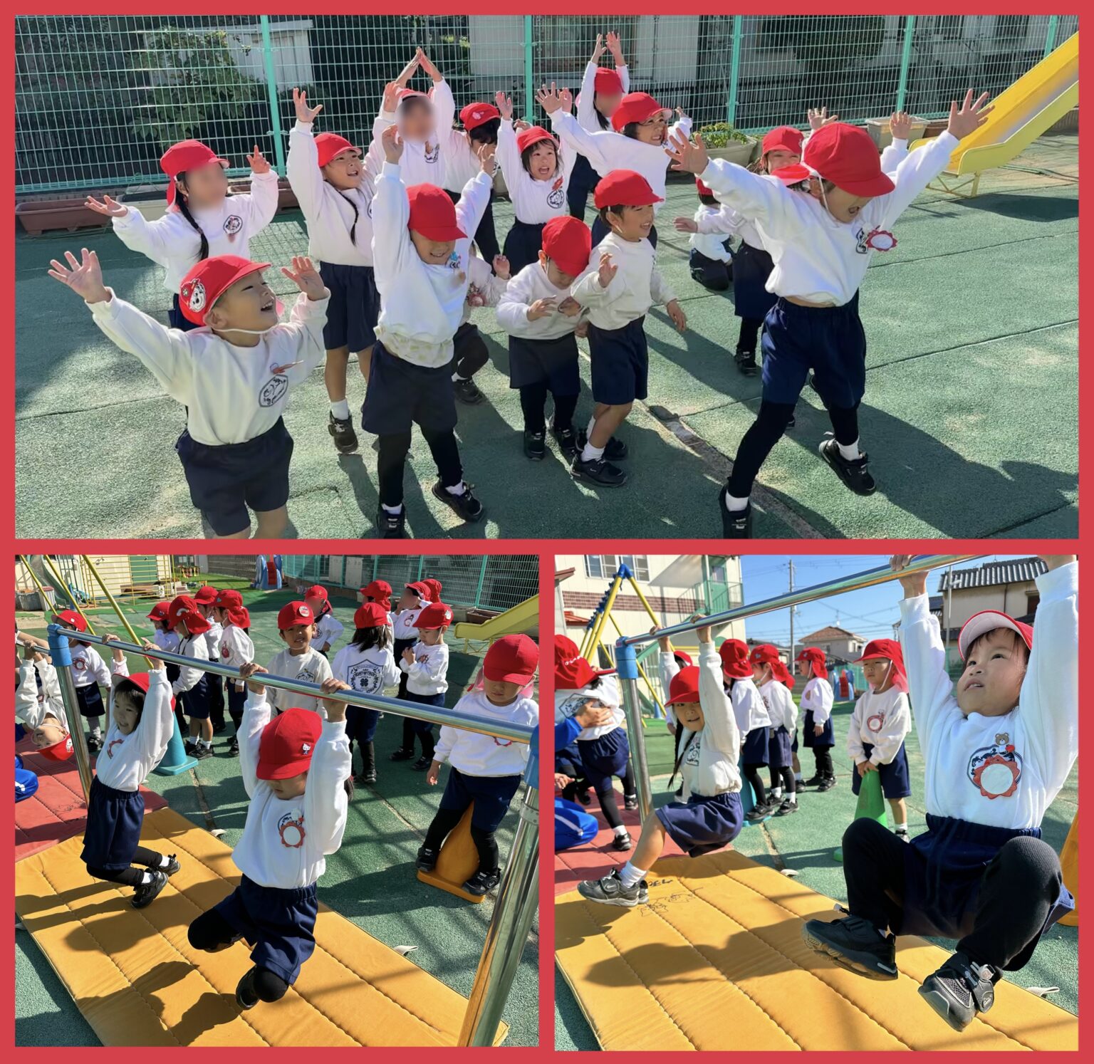 足かけ回りや手だけでぶら下がり、少しずつ鉄棒にも慣れてきています!