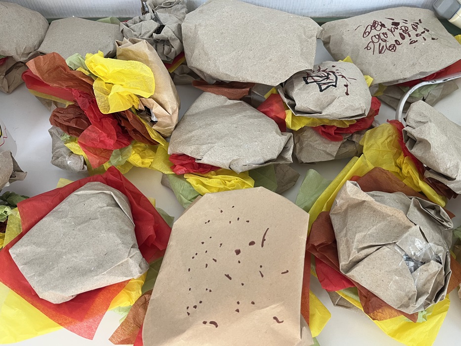 今日は、お店屋さんごっこの製作でハンバーガーを作りました。