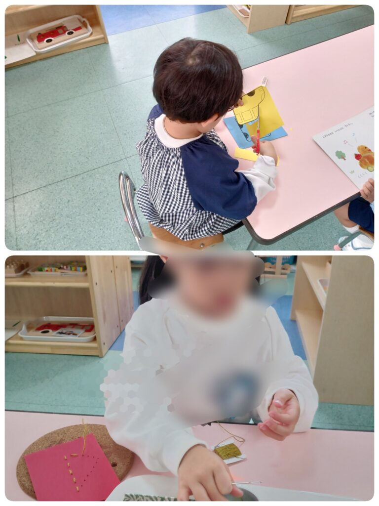 お部屋では本当にいろいろなお仕事ができるようになってきています。持ち帰っているもののおはなしを聞いてみてくださいね(^^♪