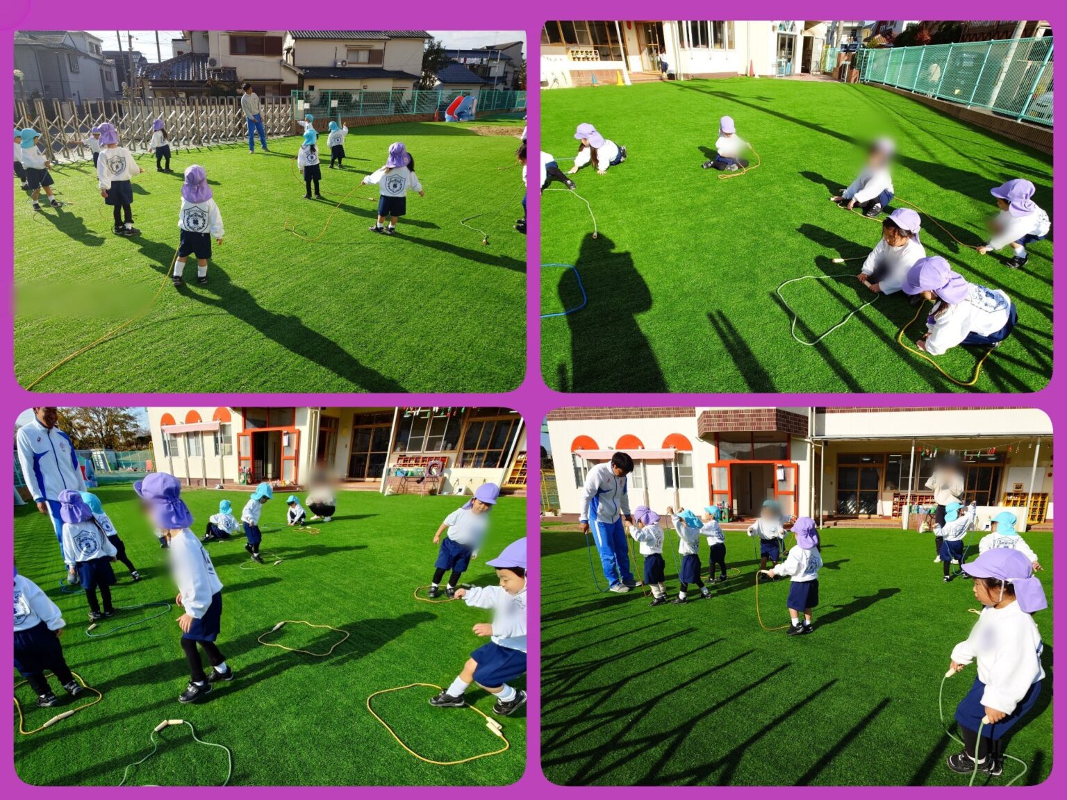 次は jump rope を丸い形に置きました。三角や四角の形も作りました!