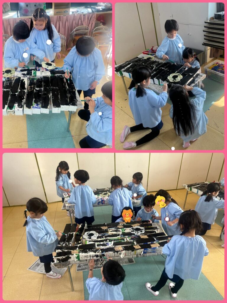 本日、共同製作を行いました。みんなの製作風景をお知らせします。