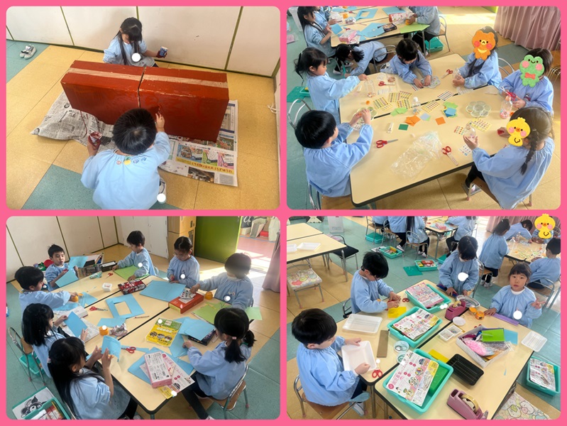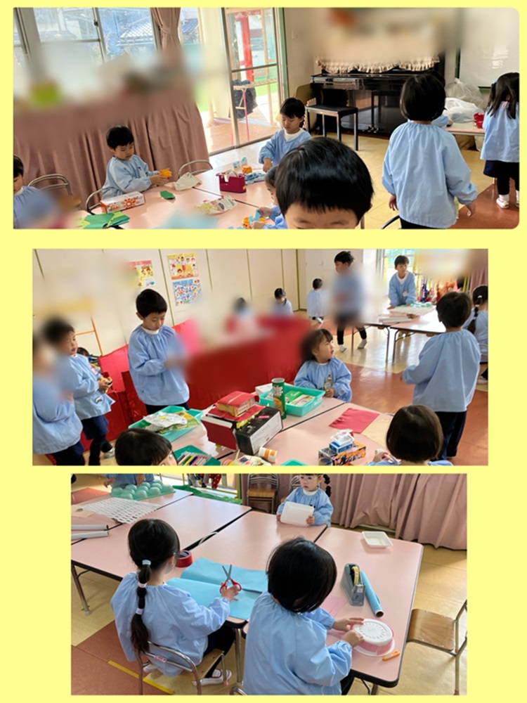 本日、共同製作を行いました。みんなの製作風景をお知らせします。