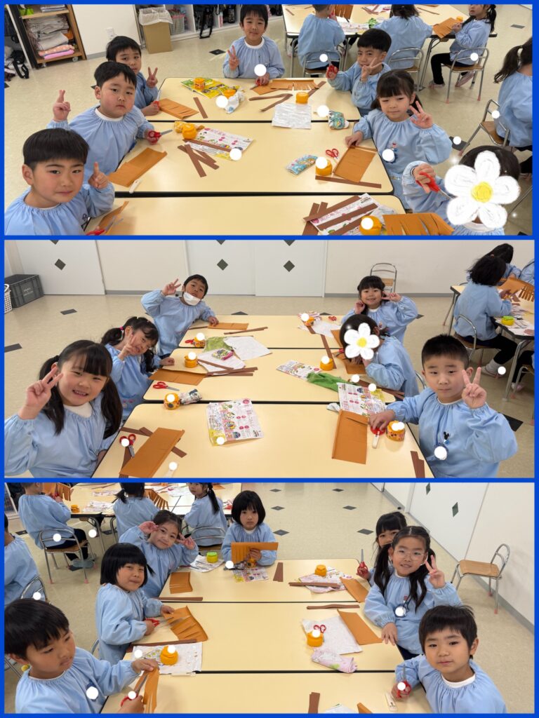 今日はお絵描きの表紙作りで画用紙を編み込んでいきました。