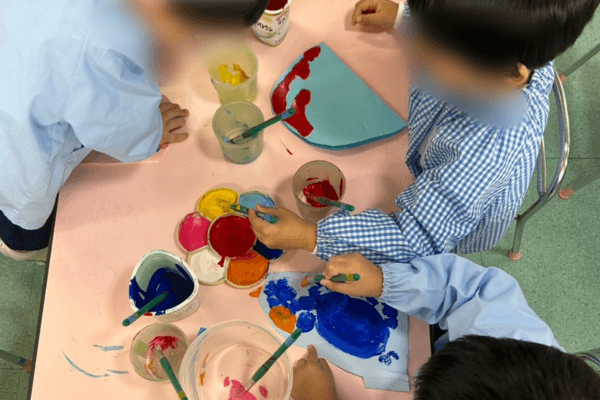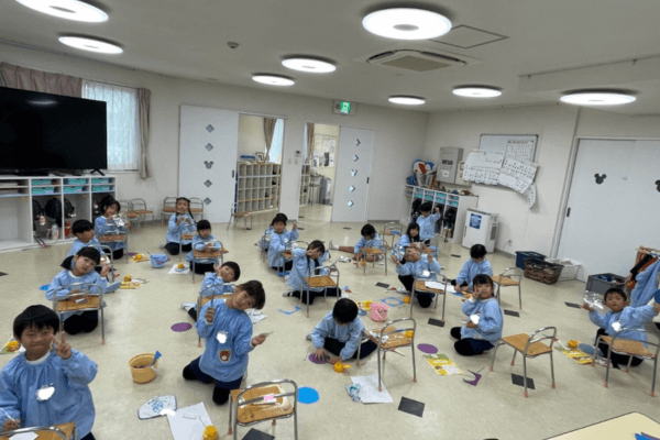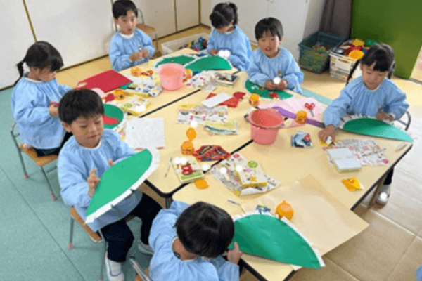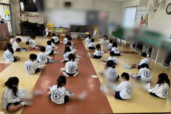 今日の空組はお仕事のほかにデカルコマニーに取組みました。絵の具を使い、いろいろな色が反対側に移ることを楽しみましたよ♪「もう一枚やりたいー!」と目をキラキラさせてくれていました。どんな作品になったかお楽しみにしていてくださいね。 年長組は...