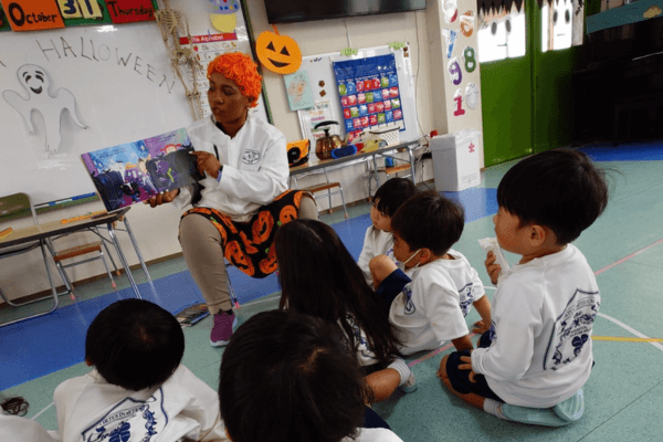 今日は、HALLOWEENの日でした♪ハロウィンの絵本を楽しく見ましたよ(*^^*) Ghost(おばけ)や、Mummy(ミイラ)などにキャーキャーと大盛り上がりの子どもたち。写真ではとても真剣に絵本に見入っていますね!!その後はHalloweenの『H』を好きな色で塗りまし...