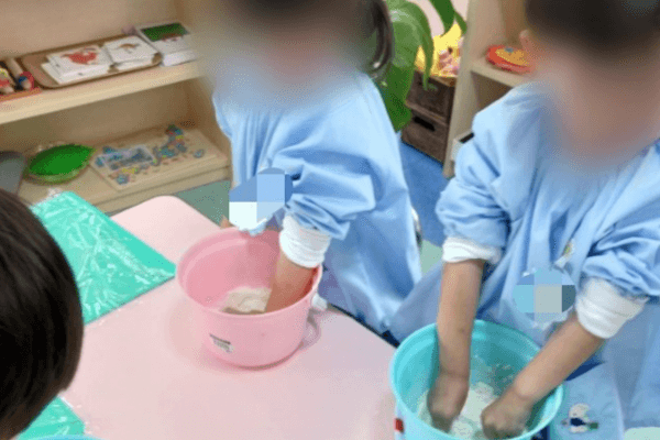 先週、とっても楽しくて「もう一回やりたい~」とリクエストの小麦粉粘土づくりをしました♪小麦粉に水をいれて食紅で色付けし、作りながら、さらさら、べたべた、こねこね、いろいろな感触を楽しみました。手にたくさんついていたべたべたが少しづつ粘土に...